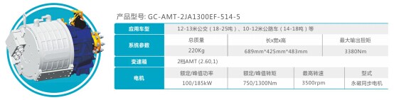 另外,绿控最新推出的1300Nm级两档AMT变速箱,也将在此次展会上首次亮相。该产品采用的是1300Nm变速箱匹配1100Nm电机,可以达到2820Nm的最大输出扭矩,相比目前市场上常用的2500Nm直驱电机产品,爬坡性能显著提高,系统重量降低40%以上,电耗也更低而且成本优势明显。该款产品主要应用在10-12米公交车和9-10米公路车上,将于今年4月份批量上市,目前已有多家客户等待批量装车。