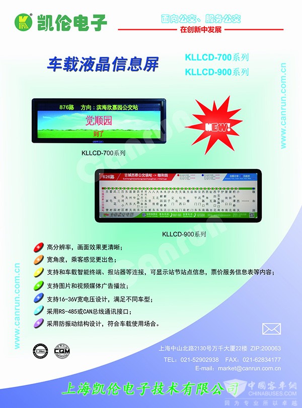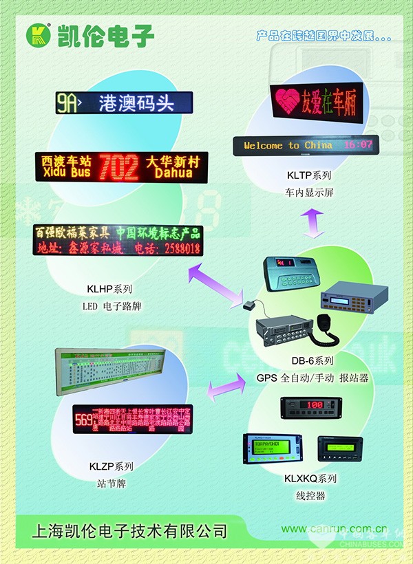 出口国外,昭示了凯伦电子的技术实力和产品品质;覆盖300多个大中城市,500多个公交客户,见证了凯伦电子的市场王道。