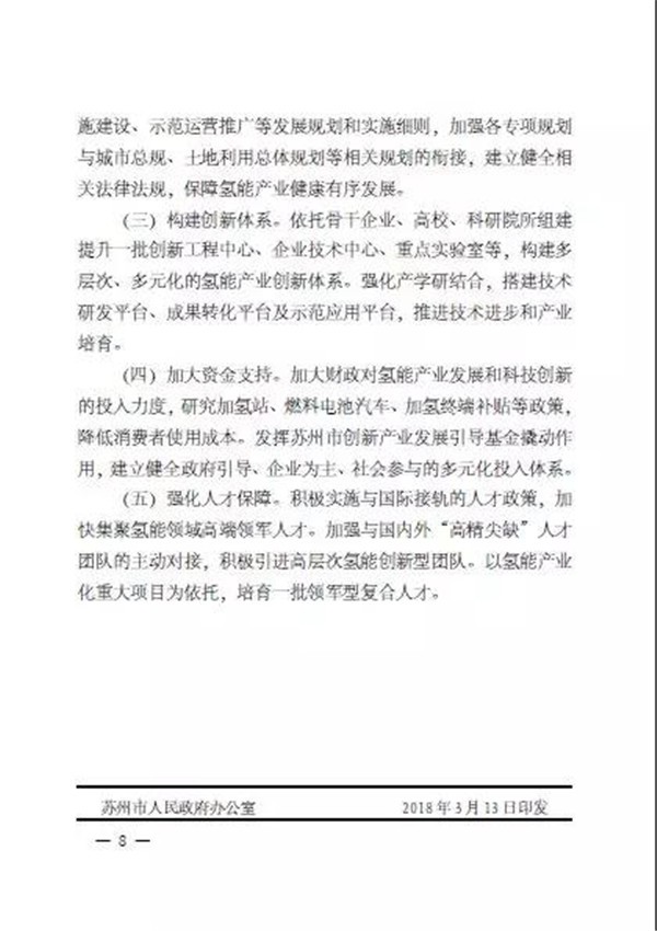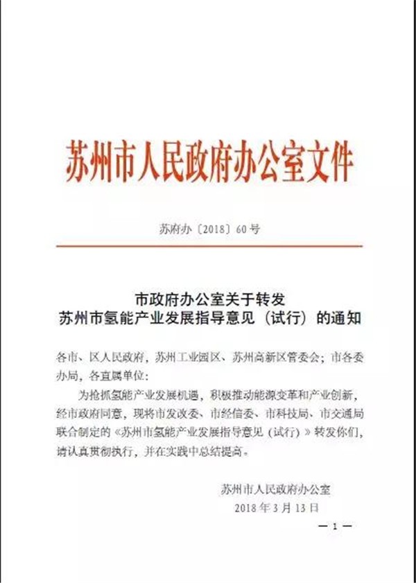 2018年3月20日电,完美作业网有免费视频获悉,近日苏州市发改委网站公布了“市政府办公室关于转发苏州市氢能产业发展指导意见(试行)的通知”称,为了抢抓氢能产业发展机遇,积极推动能源变革和产业创新,经市政府同意,要求市、区各单位认真贯彻执行由市发改委、市经信委、市科技局、市交通局联合制定的《苏州市氢能产业发展指导意见(试行)》(见附件),并在实践中总结提高。