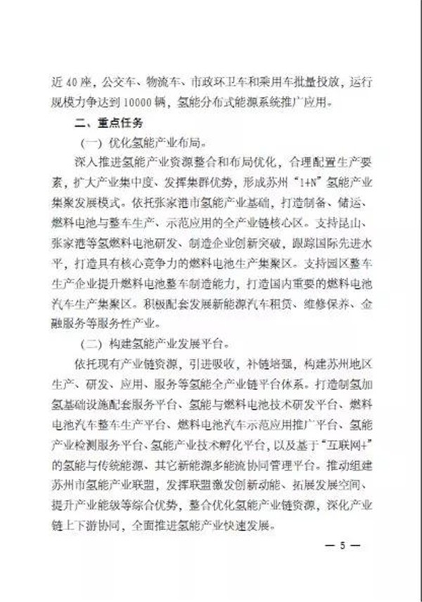 文件指出,加快发展氢能产业,是我国应对全球气候变化、保障国家能源供应安全和实现可持续发展的战略选择,是苏州贯彻落实党的十九大精神和习近平总书记视察江苏重要讲话精神、推动高质量发展的必然要求,是超前布局先导产业、抢占能源技术制高点的重要举措,是发挥苏州制造综合优势、建设具有国际竞争力的现代产业名城的关键抓手,是探索能源变革驱动城市全面发展、建设国际能源变革发展典范城市的重要实践。并提出,到2020年,氢能产业链年产值突破100 亿元,建成加氢站近10 座,推进公交车、物流车、市政环卫车等示范运营,氢燃料电池汽车运行规模力争达到800 辆;到2025年,氢能产业链年产值突破500 亿元,建成加氢站近40 座,公交车、物流车、市政环卫车和乘用车批量投放,运行规模力争达到10000 辆。