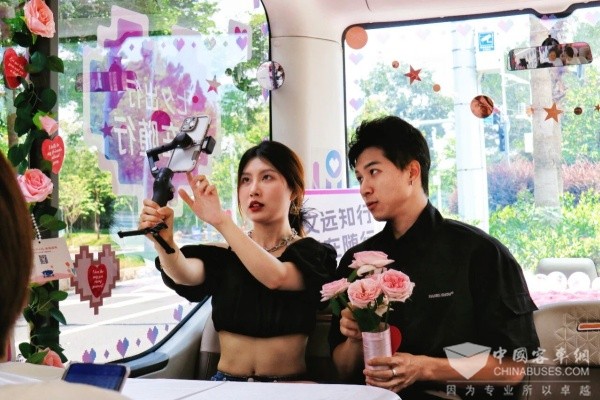 (网红博主在文远知行七夕小巴内打卡拍照)