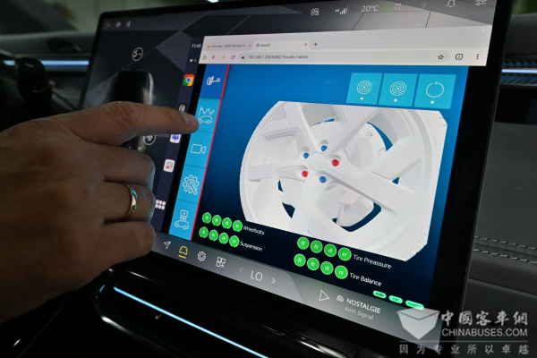 以搭载了采埃孚新型智能底盘传感器及集成式加速度传感器的演示车辆为例,该车辆通过显示屏可实时反馈底盘状态。更为特别的是,采埃孚自主研发的算法不仅能监测采埃孚品牌部件的磨损或损坏异常,还覆盖整个底盘系统。演示场景中,该车辆通过捕捉特定振动,成功监测到某车轮的螺母松动,并发出警示,提醒用户切勿继续行驶。实际情况中,此时若继续高速行驶,将给车内人员带来极大的事故风险。