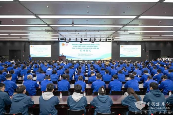 2025年11月20日,中国机械冶金建材行业创新工作室联盟(山东站)、山东省汽车行业劳模工匠创新工作室联盟暨2025年高端动力内燃机装试工职业技能竞赛启动仪式在潍柴隆重举行。中国机械冶金建材工会主席、分党组书记李睿祎出席活动并讲话,山东省总工会党组成员、副主席王政,山东省汽车行业协会副会长王志华,潍坊市人大常委会党组副书记、副主任,市总工会主席田民利致辞。山东重工集团、潍柴集团相关领导、职工代表,创新工作室联盟单位负责人、全国各地参赛选手等400余人参加会议。