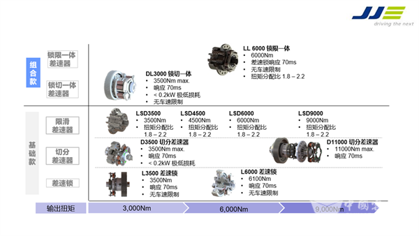 所有组合功能产品的封装尺寸和机械接口均可与传统开放式差速器或单一功能产品保持一致,整车厂无需更改驱动轴或安装方式,即可提供常规、断开、锁止和各种组合等不同驱动模式。其中DL Combo锁切一体差速器,作为组合功能系列的首推产品,是全球首款集差速、切分与锁止功能于一身的产品。