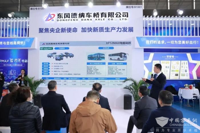 展会首日,以“睿享公交,共赢未来”为主题,东风德纳车桥正式发布EP12Max“能效王”电驱桥,作为面向中运量公交市场的战略新品,EP12Max新品发布会成为全场焦点。