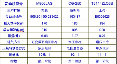 *参加对比试验的三种压缩天然气发动机在对比试验期间,均能够适应本市的运营条件,动力性和排放性能基本正常,未发生严重故障和致命故障。