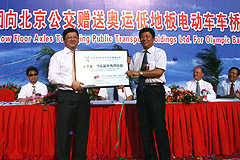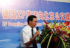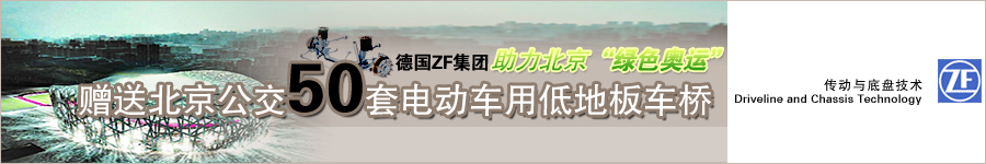 9月3日,德国ZF集团向北京公交公司捐赠电动车低地板车桥仪式在北京公交公司总部隆重举行。仪式上,德国采埃孚集团向北京公交公司赠送了50套2008奥运会电动车用低地板车桥。采埃孚集团副总裁、亚太区主席Manfred