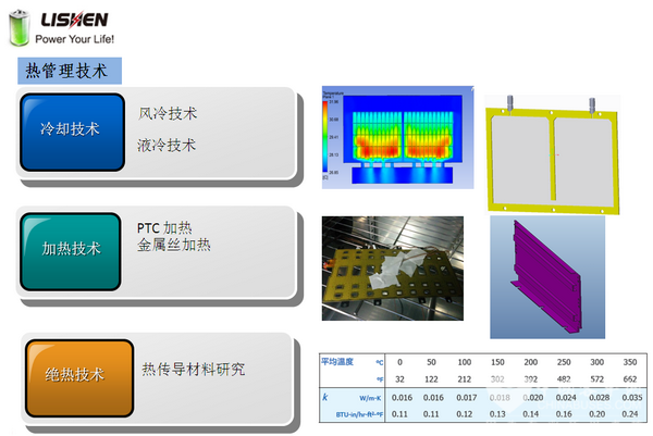热管理技术有冷却技术、加热技术、绝热技术。冷却技术:风冷技术和液冷技术。加热技术:PTC加热、金属丝加热。