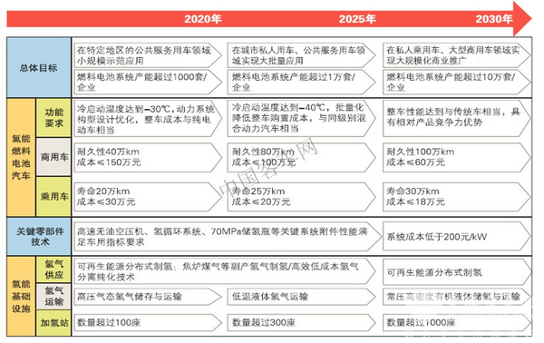 1.关键材料、零部件逐步国产化。到2020年,实现燃料电池关键材料批量化生产的质量控制和保证能力;到2025年,实现高品质关键材料、零部件实现国产化和批量供应。