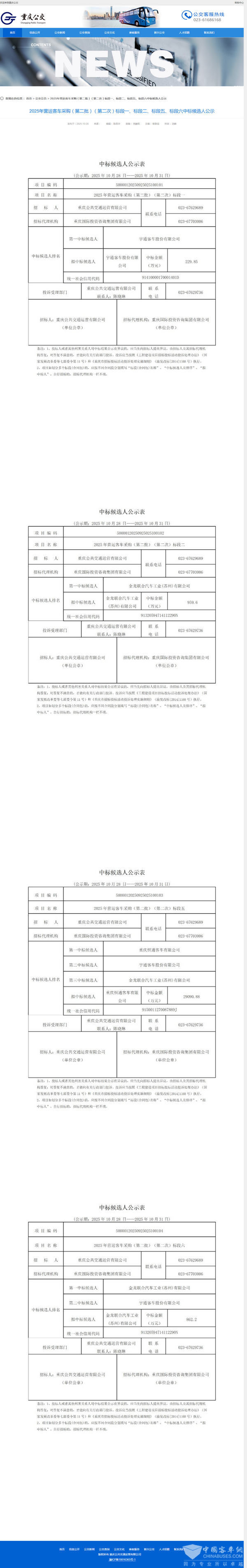 - 攀枝花市城市公交车采购标段一(第二次) 中标候选人公示