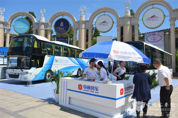 中通携旅游大巴和纯电动客车亮相道路运输展