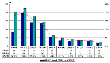 7-8米客车本月销量所占总销量17.41%,下降势头终于止住,增长2.15%。本月这一区段总销量为1117辆。下表中10家客车企业的销量所占本系列总销量89.17%,集中度再次保持在很高位置。郑州宇通、苏州金龙位置没有变化,江苏友谊将厦门金旅挤出前三名,牡丹汽车这个月表现也差强人意。
