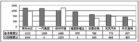 本月受前期客车降价浪潮影响,大型客车走势很好,但市场格局变幻不定,为夺"蛋糕"各家企业花样翻出。刚刚问世的长城旅居车出现热销,在五一黄金周期间,咨询热线电话不断,产品供不应求。它以独特、新颖和人性化的新款车型、不足14万元的价位,受到了旅游界人士及业内专家的好评。此后,长城客车又将新研发的电子除菌清闲器无偿馈赠客户。安凯公交车中标广州白马巴士,为安徽安凯汽车股份有限公司又添188辆大定单。中大汽车过关斩将,大举进入三峡旅游客运市场,获得湖北宜昌一家汽车贸易公司客车采购大单,首批订单为55台高档豪华客车。同时,中大汽车新的生产线竣工,并投入批量生产,这条生产线投产后,中大汽车生产基地占地总面积达80万平方米,厂房面积达45万平方米,豪华客车生产能力达到1.5万辆,有望成为我国最大的商用车制造商之一。