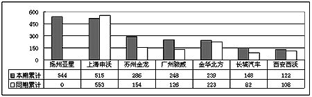 2004年1~5月份大型客车销量对比(前7家企业) 单位:辆