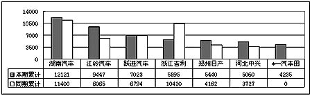 注:其他企业累计销量为广州羊城(162)、成都新大地(124)、扬州亚星(88)、成都隆鑫(66)、四川汽车(59)、中信机电(47)、东风起亚(36)、湖南三湘(30)、安徽安凯(25)、福建八闽(10)、华航汽车(1)、南燕汽车(0)、沈飞客车(0)、江苏亚星(0)、郑州宇通(0)、郑州轻型(0)、武汉中誉(0)、三江雷诺(0)、湛江三星(0)、重庆专用(0)、四川公路(0)、成都王牌(0)、云南金马(0)。