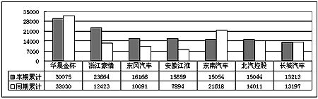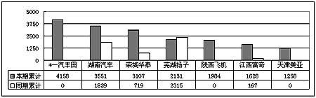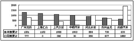 2004年1~5月份轻型客车销量对比(前7家企业) 单位:辆