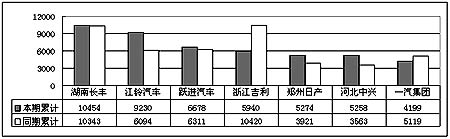 注:其他企业累计产量为广州羊城(144)、成都新大地(144)、扬州亚星(95)、成都隆鑫(78)、四川汽车(69)、湖南三湘(35)、中信机电(23)、安徽安凯(21)、福建八闽(5)、郴洲南燕(2)、沈飞客车(1)、东风悦达(0)、江苏亚星(0)、郑州宇通(0)、郑州轻型(0)、武汉中誉(0)、三江雷诺(0)、湛江三星(0)、重庆专用(0)、四川机械(0)、成都王牌(0)、贵州华航(0)、云南金马(0)。