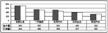 5月份中型客车生产企业产量排名前五家企业依次是安徽江淮、一汽集团、东风汽车、苏州金龙和跃进汽车。