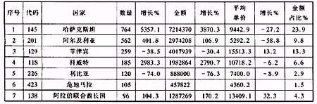 2003年1-12月,我国共向73个国家出口各类客车4486辆,金额5614万美元,向哈萨克斯坦出口客车按数量排序和金额排序均为第五。而2004年1——5月,我国共向66个国家出口客车2768辆,金额3120万美元,向哈萨克斯坦出口客车按数量排序和金额排序均跃居第一,增长可观,也十分突出(见表一)。