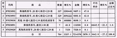 (二)2004年1-5月向哈萨克斯坦出口客车的企业共有18家,亦分为两类: